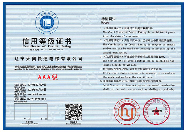 3A级信用等级证书